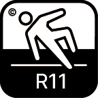 R 11 Propriétés antidérapantes jusqu'à une inclinaison de 19° à 27°